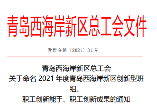 喜報!公司在新區(qū)總工會創(chuàng)新型班組和職工創(chuàng)新能手榜上有名