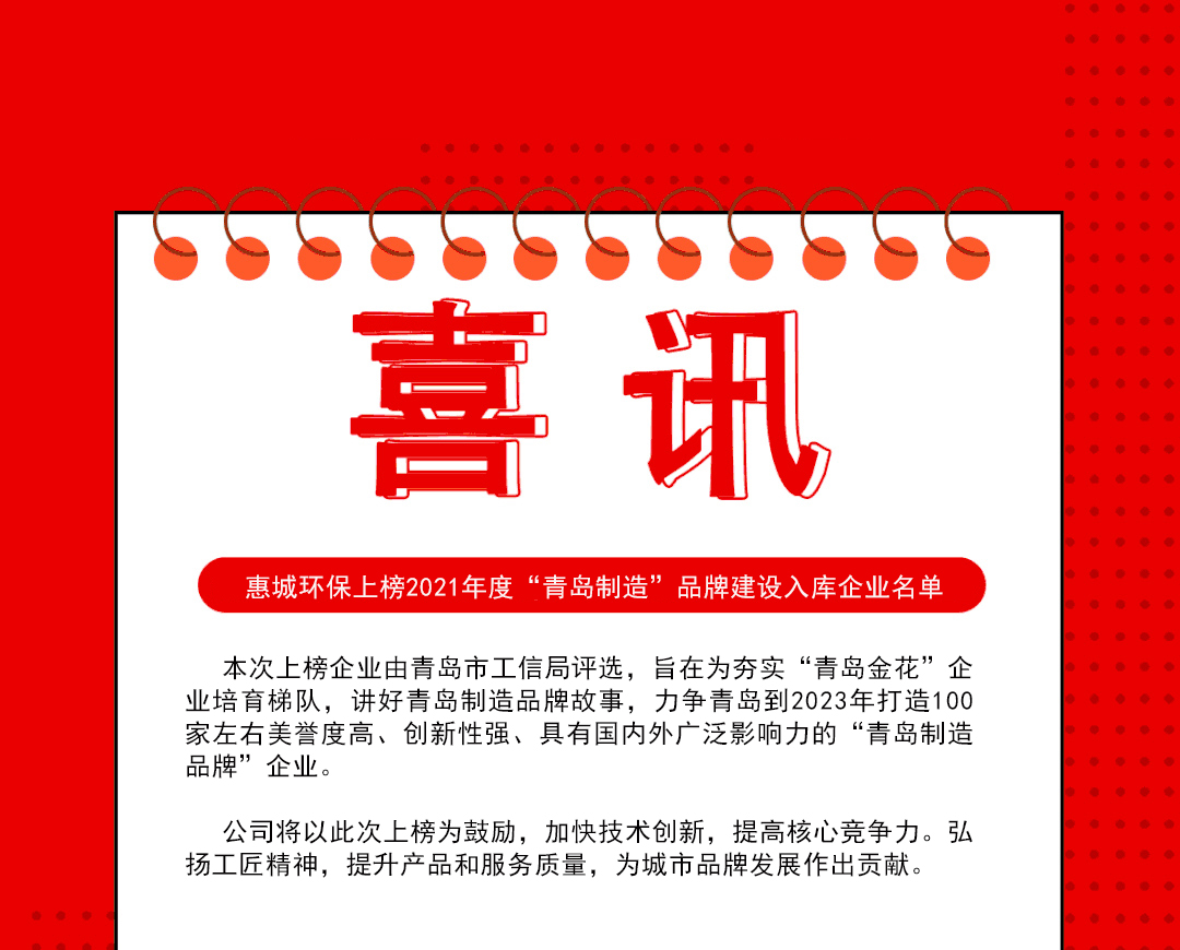 熱烈祝賀公司上榜2021年度“青島制造”品牌建設(shè)入庫企業(yè)名單