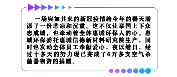 后,裝載五萬支殺菌器的車輛啟動,它將承載全體惠城環保人的愛心,駛達最急需的防疫一線。