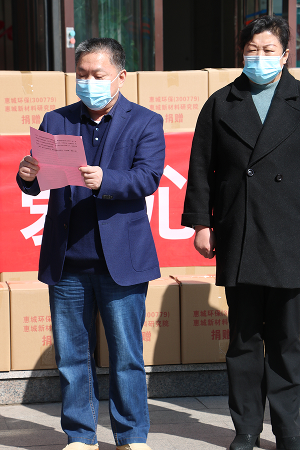 司董事長張新功表示,公司自成立以來始終堅持讓“社會尊重”的管理目標,特別是在深交所創業板上市后更應以實際行動履行上市公司的社會責任和擔當。目前新冠肺炎疫情形勢依然嚴峻,惠城環保將與社會各界一道,持續為抗“疫”傾情獻力,踐行企業的使命和擔當。