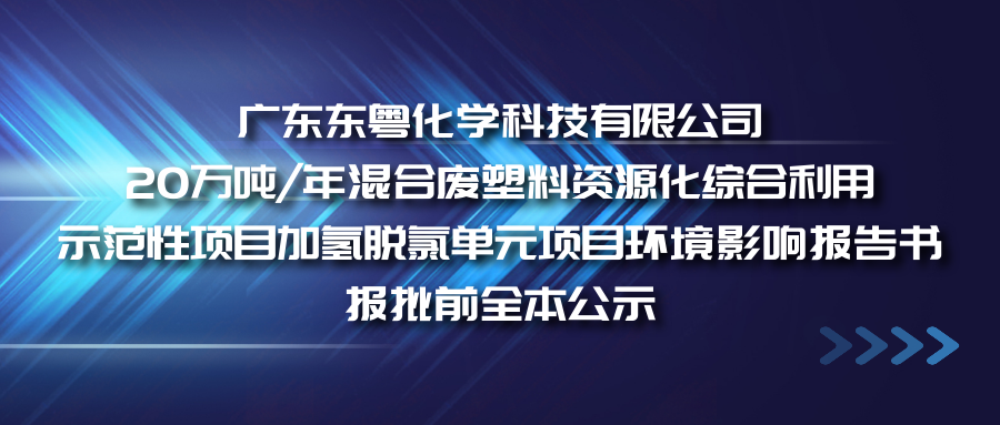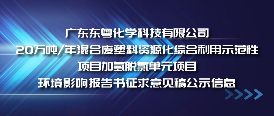 廣東東粵化學科技有限公司擬報批《廣東東粵化學科技有限公司20萬噸/年混合廢塑料資源化綜合利用示范性項目加氫脫氯單元項目環境影響報告書》。根據《中華人民共和國環境影響評價法》《環境影響評價公眾參與辦法》(生態環境部令 第4號)的有關規定,為了方便公眾查閱,現予公開擬報批的環境影響報告書全文和公眾參與說明。[ 查看更多 ]